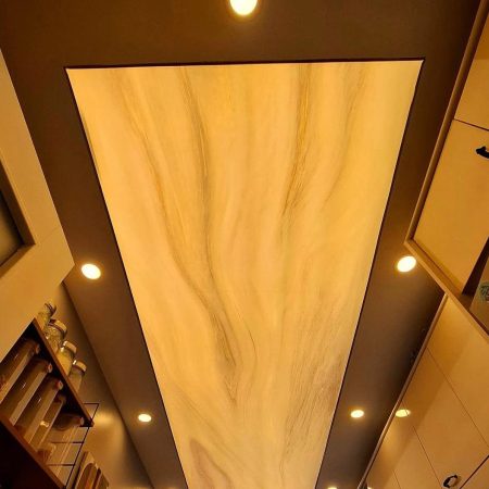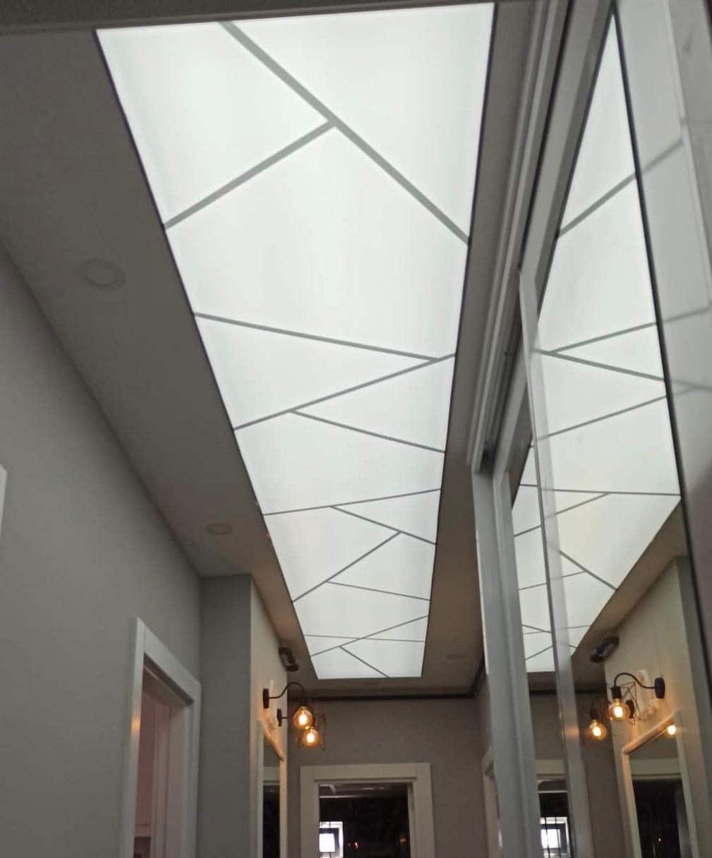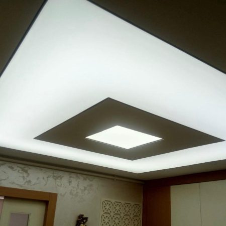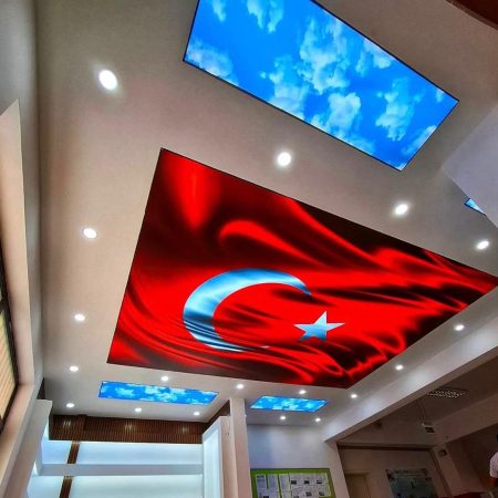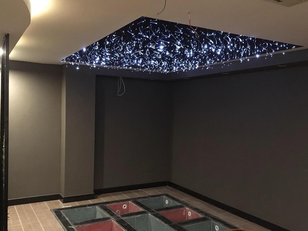 LED aydınlatmalı gergi tavanlar, iç mekânda lüks ve huzurlu bir atmosfer oluşturur.
