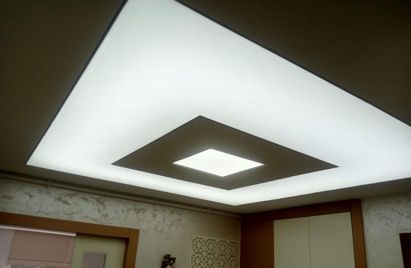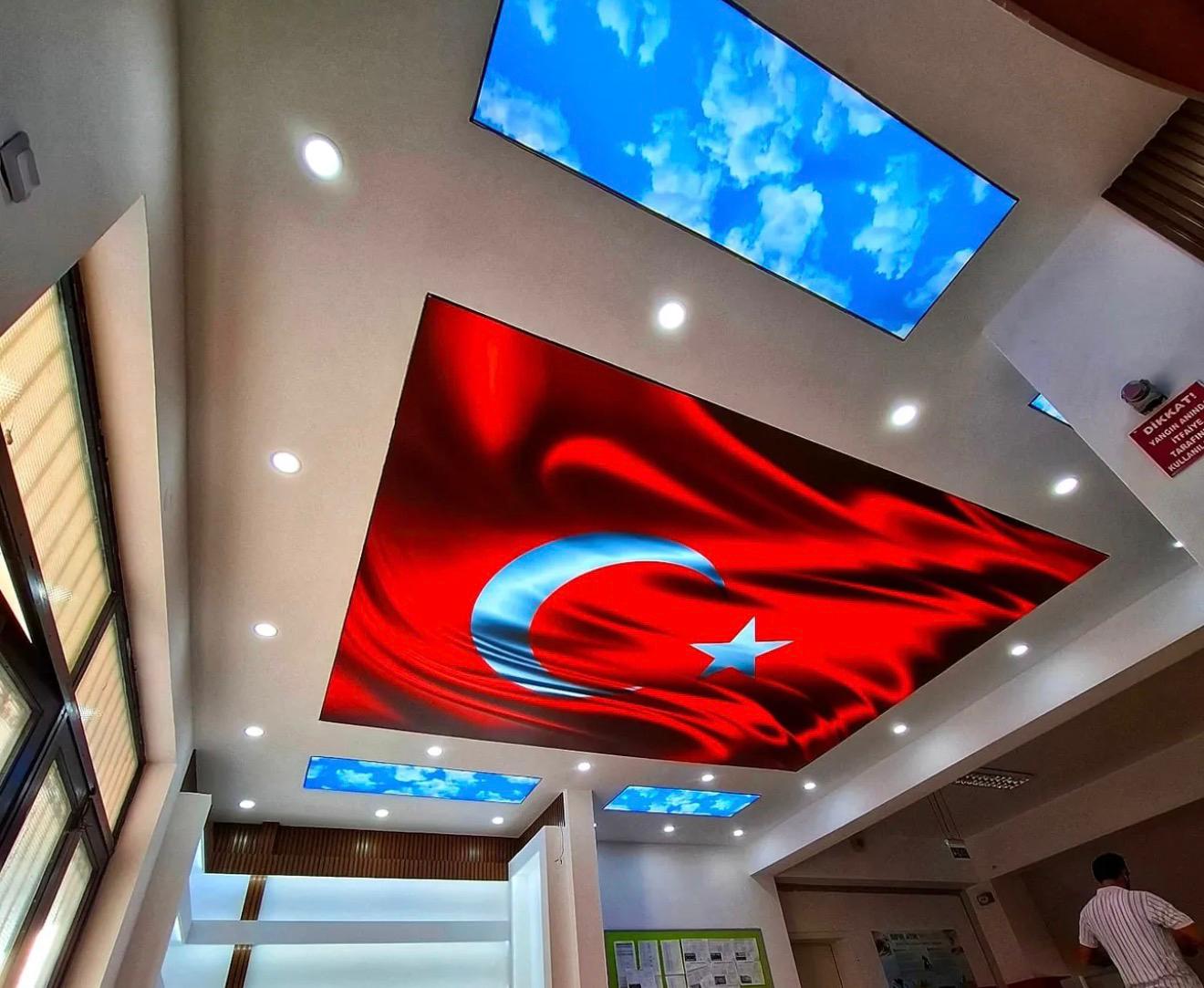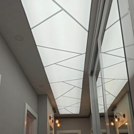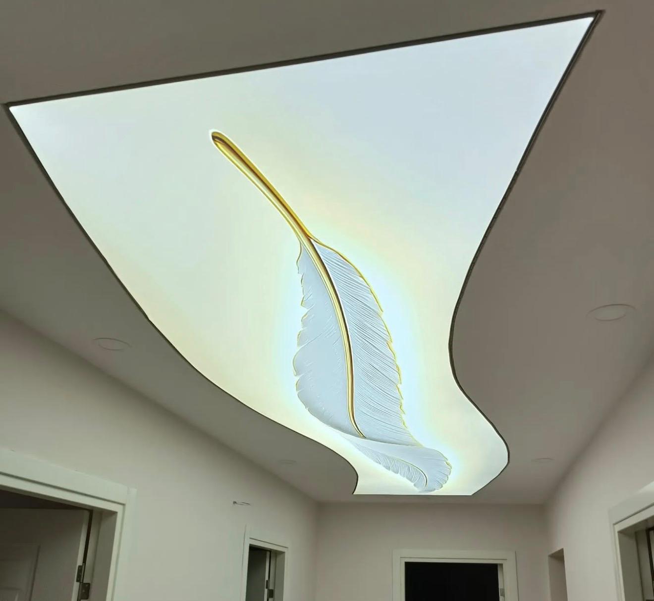 LED aydınlatmalı gergi tavanlar, iç mekânda lüks ve huzurlu bir atmosfer oluşturur.
